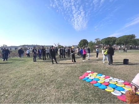 拓展活動設(shè)置了飛盤高爾夫、飛盤保齡球、飛盤九宮格、飛盤擲準(zhǔn)等項目。