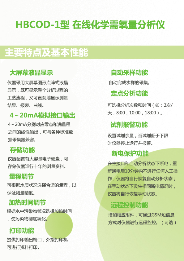 北京環(huán)科HBCOD-1型在線化學需氧量分析儀